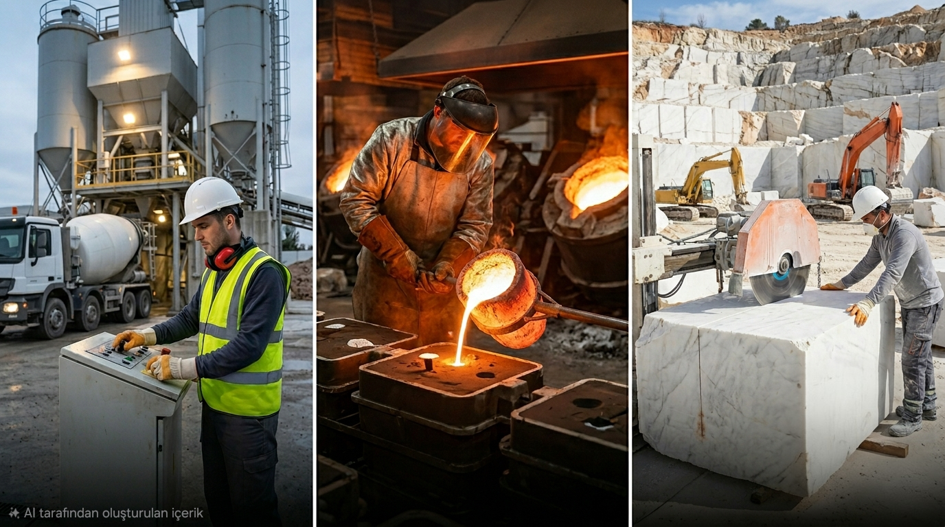 Beton santrali, döküm, mermer ocağı vb. çalışma alanlarında